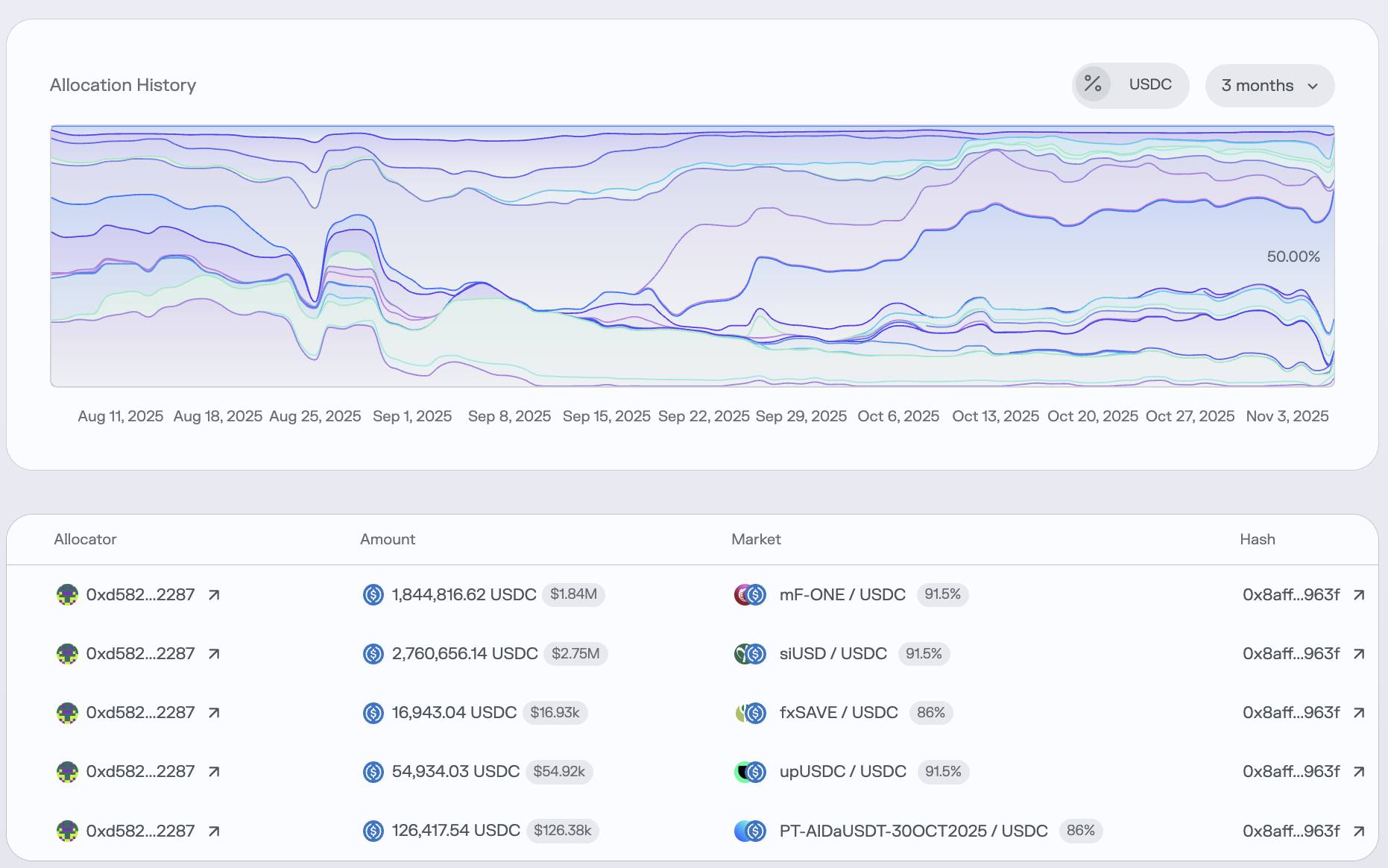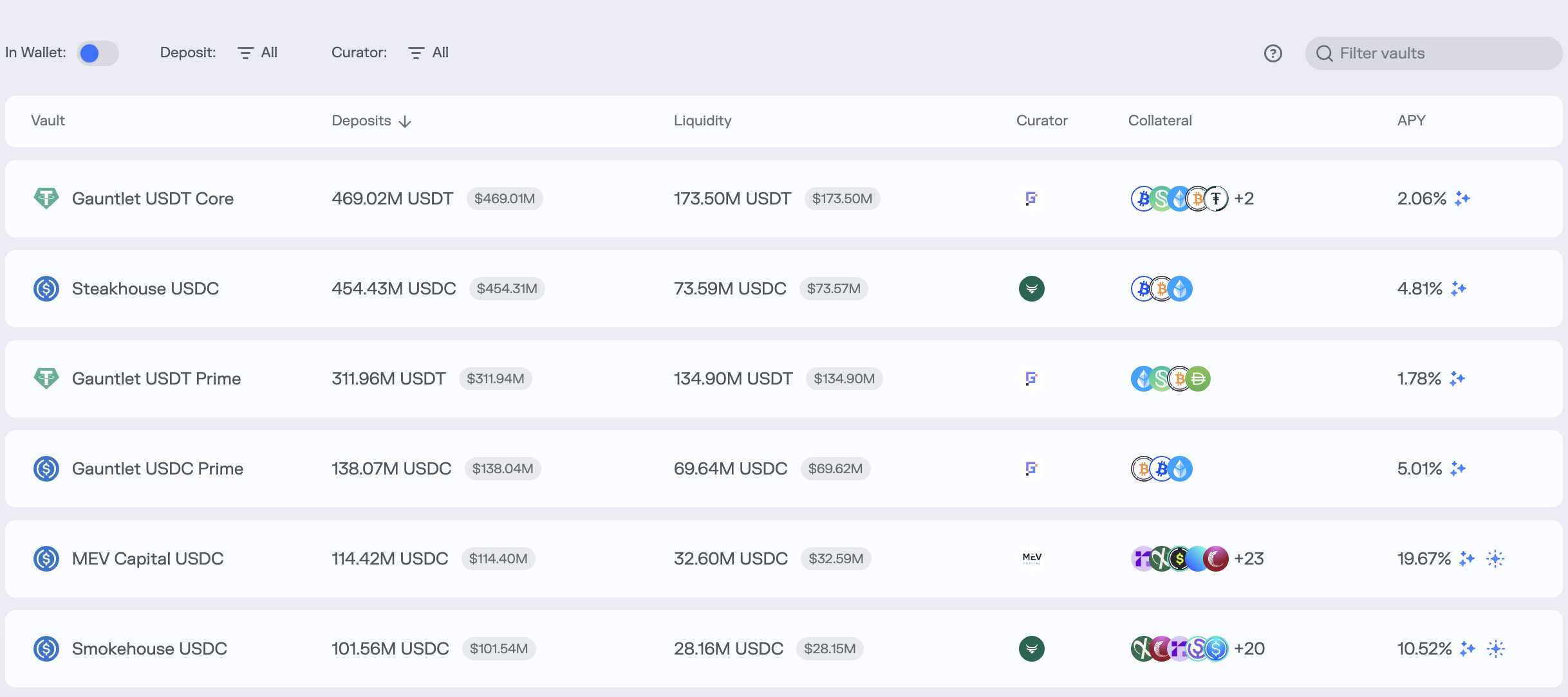 于是,它们引入了「Curator」(专业主理人)。用户不再将钱存入一个统一的池子,而是选择由 Curator 管理的一个个「金库」(Vaults)。用户将钱打进金库,而 Curator 则全权负责如何用这些钱去投资、去生息。